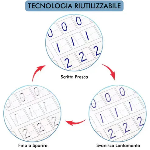 Con i nostri libri educativi e la penna magica, tuo figlio può esercitarsi senza paura di sbagliare. L’inchiostro scompare da solo: ogni errore diventa parte del processo. Ogni esercizio, un nuovo inizio.